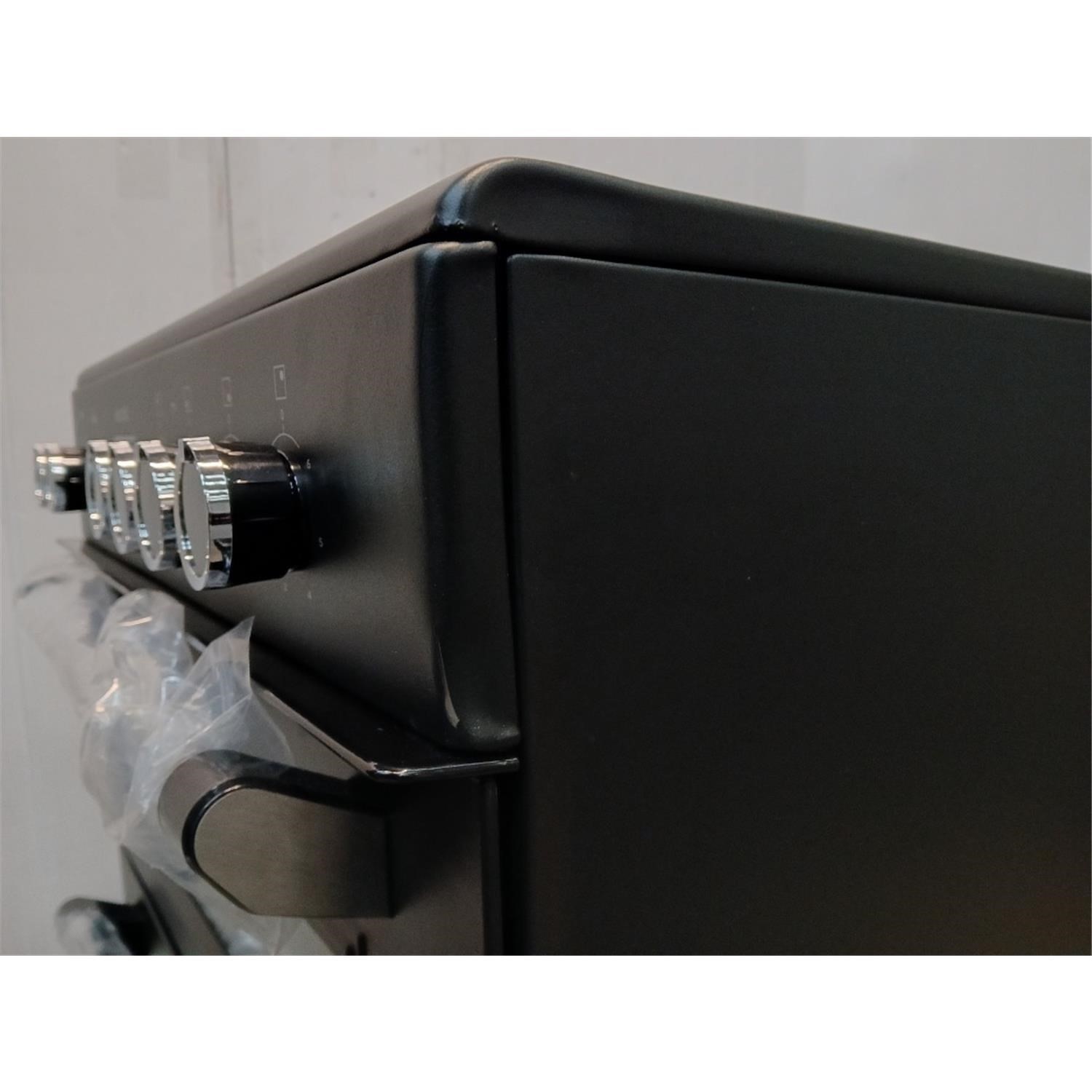 This sleek black cooker is a versatile and practical addition to any kitchen. Designed to simplify your cooking experience, it handles everything from roasting a Sunday dinner to baking sweet treats with ease. Its dual ovens provide plenty of space for family meals or entertaining guests, while the user-friendly features ensure your time in the kitchen is stress-free.