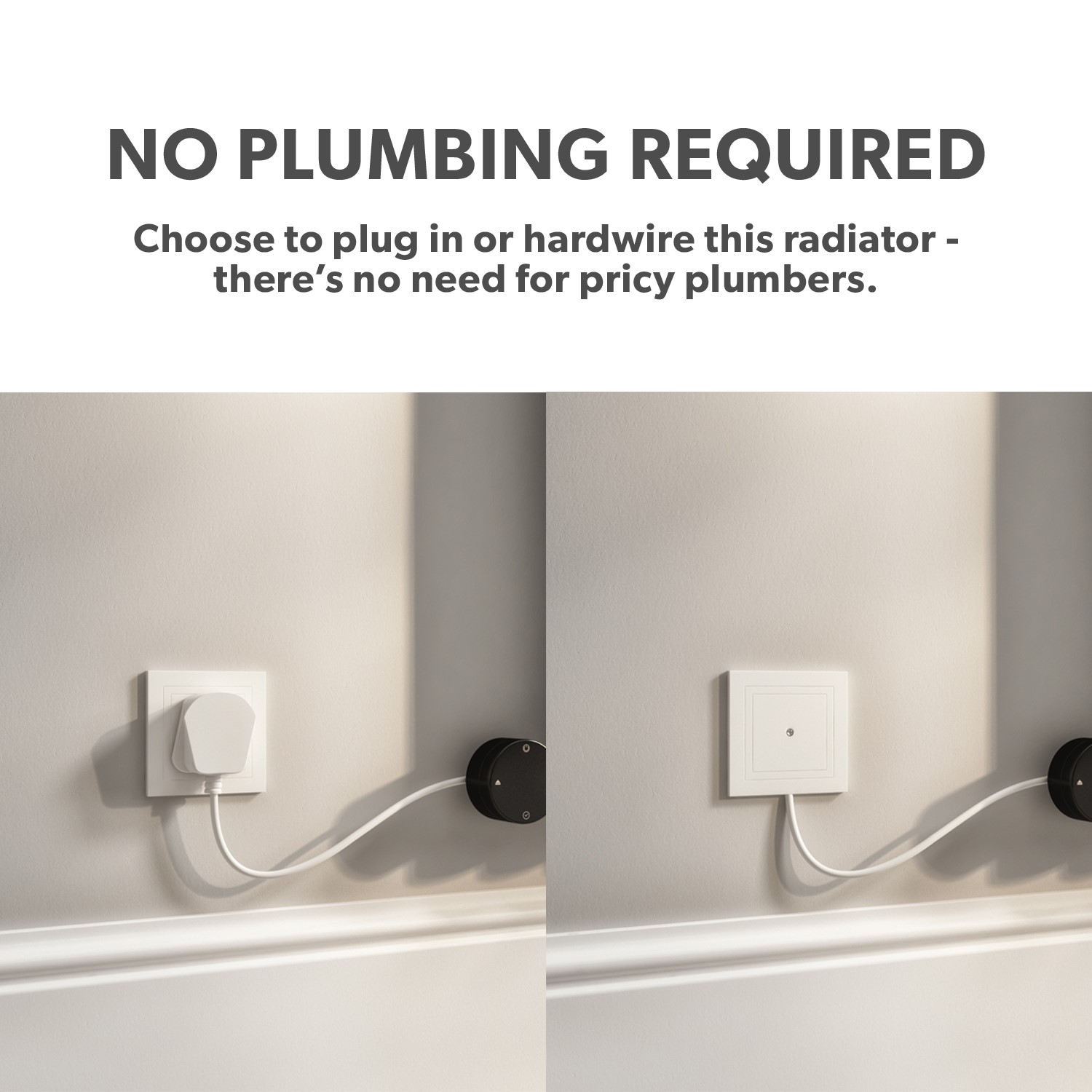 There’s no plumbing required with this modern designer radiator, which means installation is quick and straightforward. Simply mount it on the wall and plug it in. It features a digital thermostat for quick adjustments and can also be controlled via the intuitive Tuya app. Perfect on those noticeably cooler days; turn your radiator on with the touch of a button, ready for your arrival.