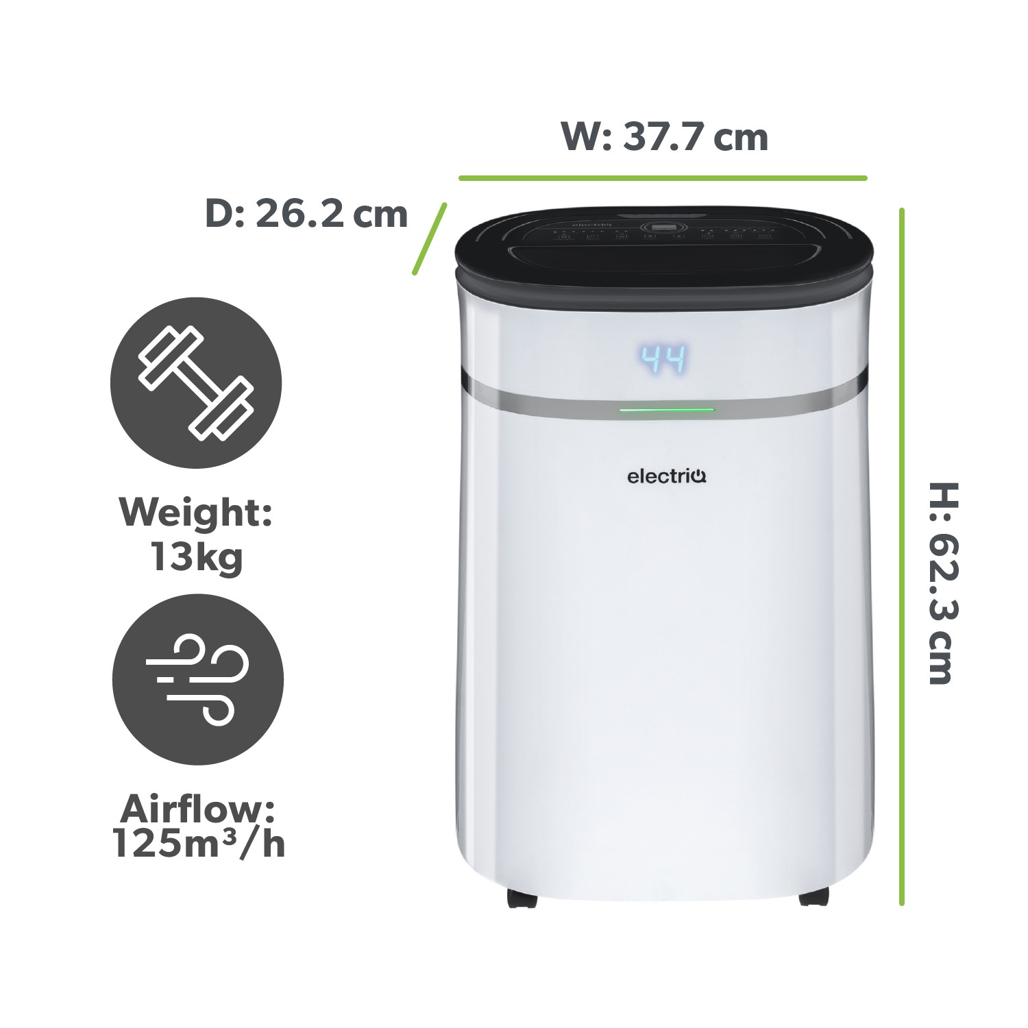 Protect your health and home from the harmful effects of excess humidity with this low energy 12L dehumidifier from electriQ. Suitable for flats and houses up to 3 bedrooms, this powerful yet incredibly energy efficient dehumidifier provides a cost-effective solution in combating damp, mould and condensation. It works by removing excess moisture in the air, encouraging the growth of common allergens such as mould and bacteria. There's even a UV light, an active carbon filter and a HEPA filter to sterilise and deodorise your home further.