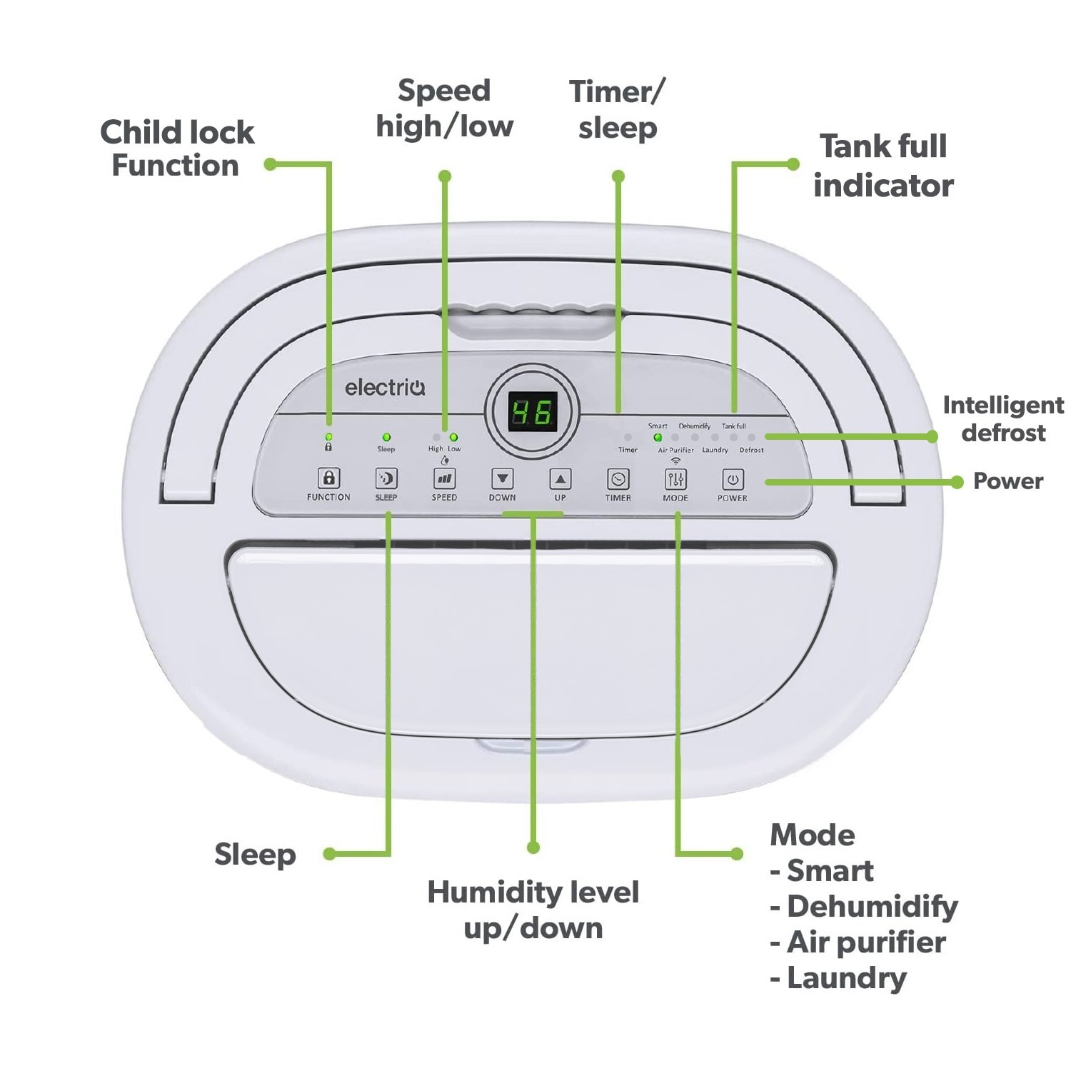 - Smart mode: Automatically maintains your house at optimal humidity with one touch of a button