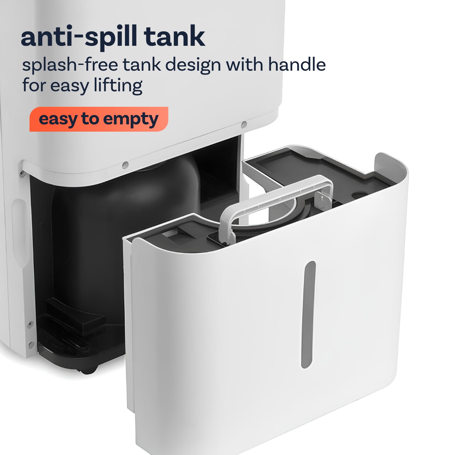 - Safety Features: Tank fill indicator, Auto-Off, Auto-Restart, Auto-Defrost, Child-Lock