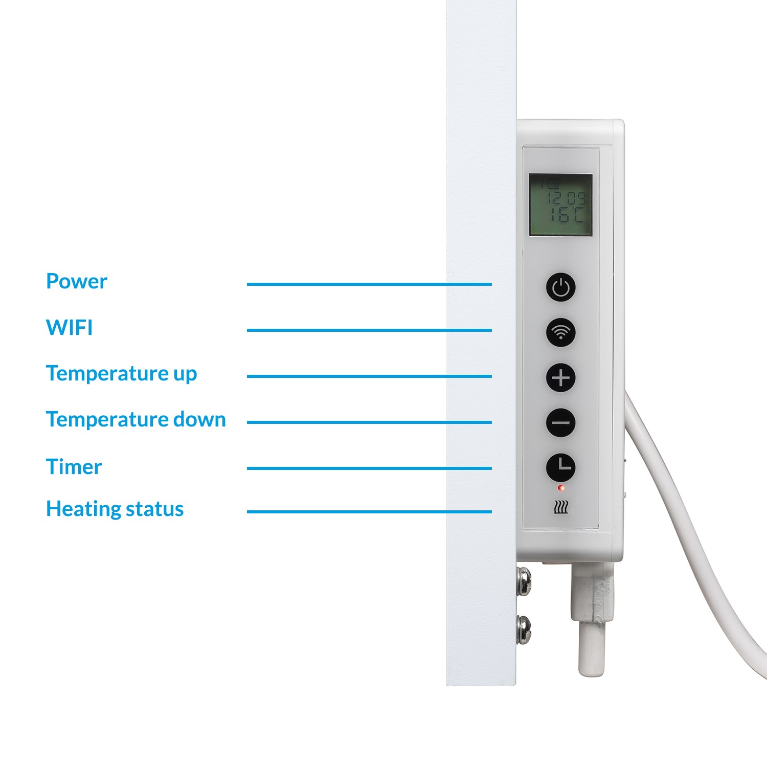 You can choose to plug it in or have it hardwired, depending on your preference. Wi-Fi connectivity allows you to control all its functions from your smartphone, wherever you are. Simply connect the heater to your home Wi-Fi, download the Tuya app, and manage your heating schedule with ease. This feature helps you be more energy-efficient, letting you preheat your room just before you arrive home. Built with efficiency in mind, the heater includes a weekly timer, precise digital controls, and an energy-conscious design to help you save on running costs while keeping your space cosy and warm.