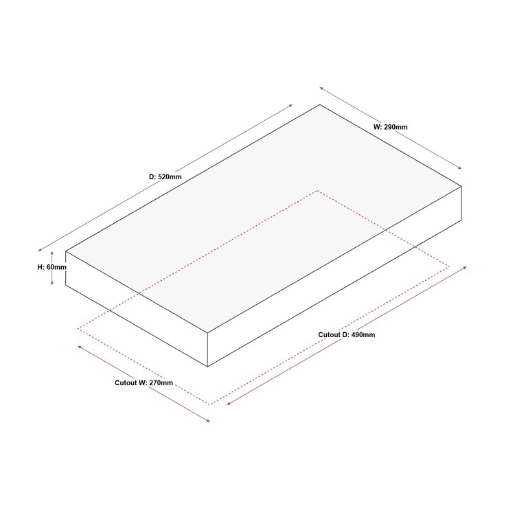 - Cut-out dimensions: W 490 x D 270mm