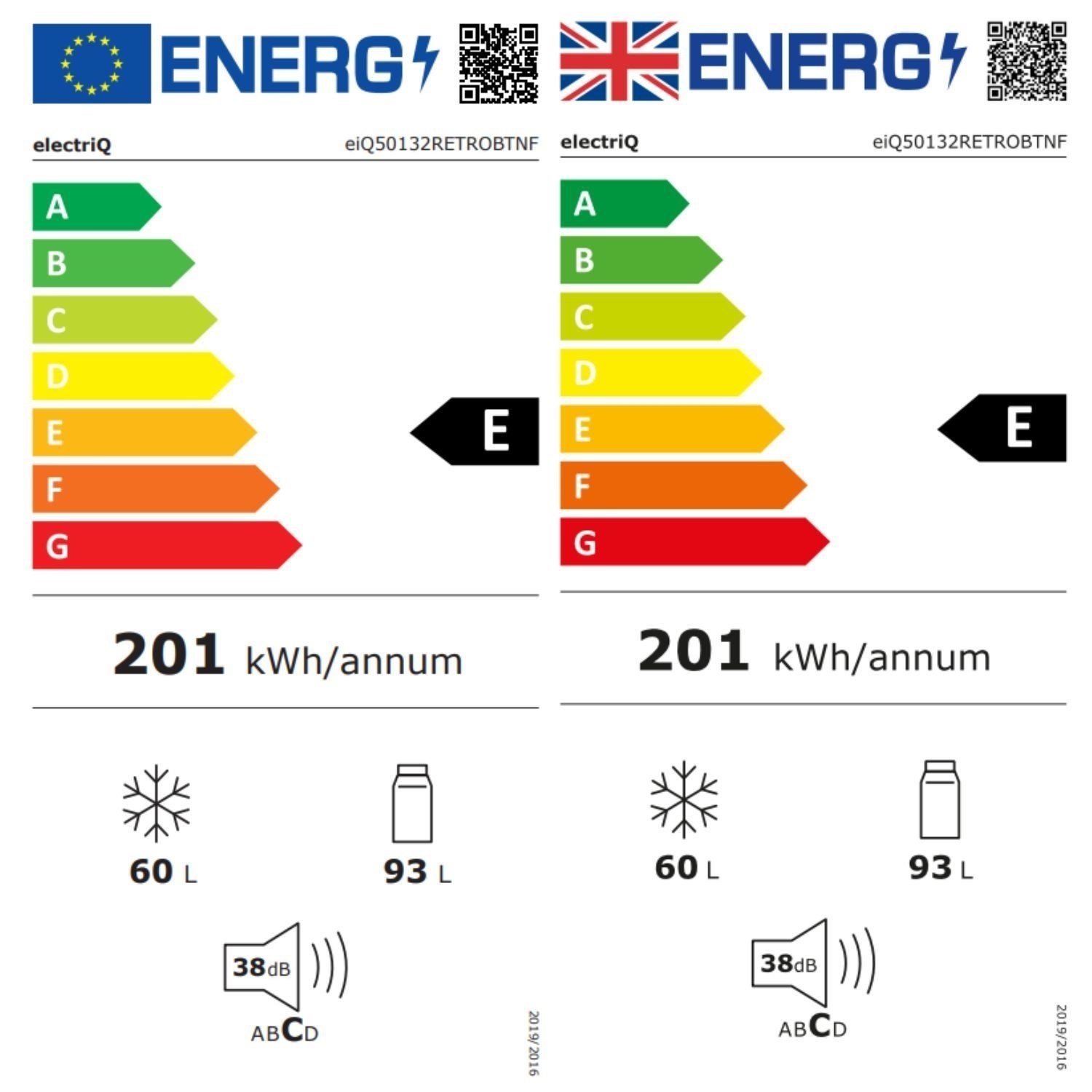 • Energy Class: E with an annual energy consumption of 201 kWh