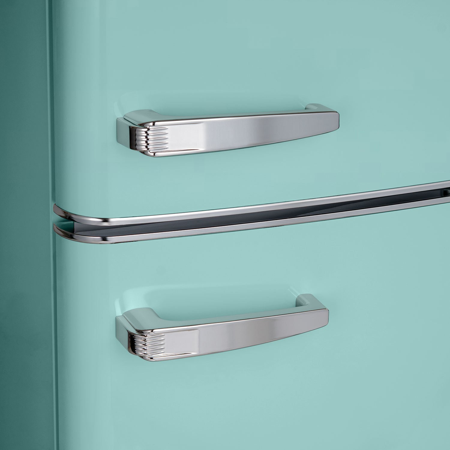 This stylish freestanding fridge freezer combines a retro-inspired design with modern features, making it an excellent choice for anyone seeking an aesthetic yet functional addition to their kitchen. Its blue-colored finish, paired with chrome handles, gives it a timeless look. With 153L of total storage capacity, this appliance is perfectly sized for smaller households or as a secondary unit. The 93L fridge compartment includes one shelf, a crisper drawer, and door balconies for organizing your essentials. The 60L freezer section offers three transparent drawers, making it easy to sort and access frozen goods.