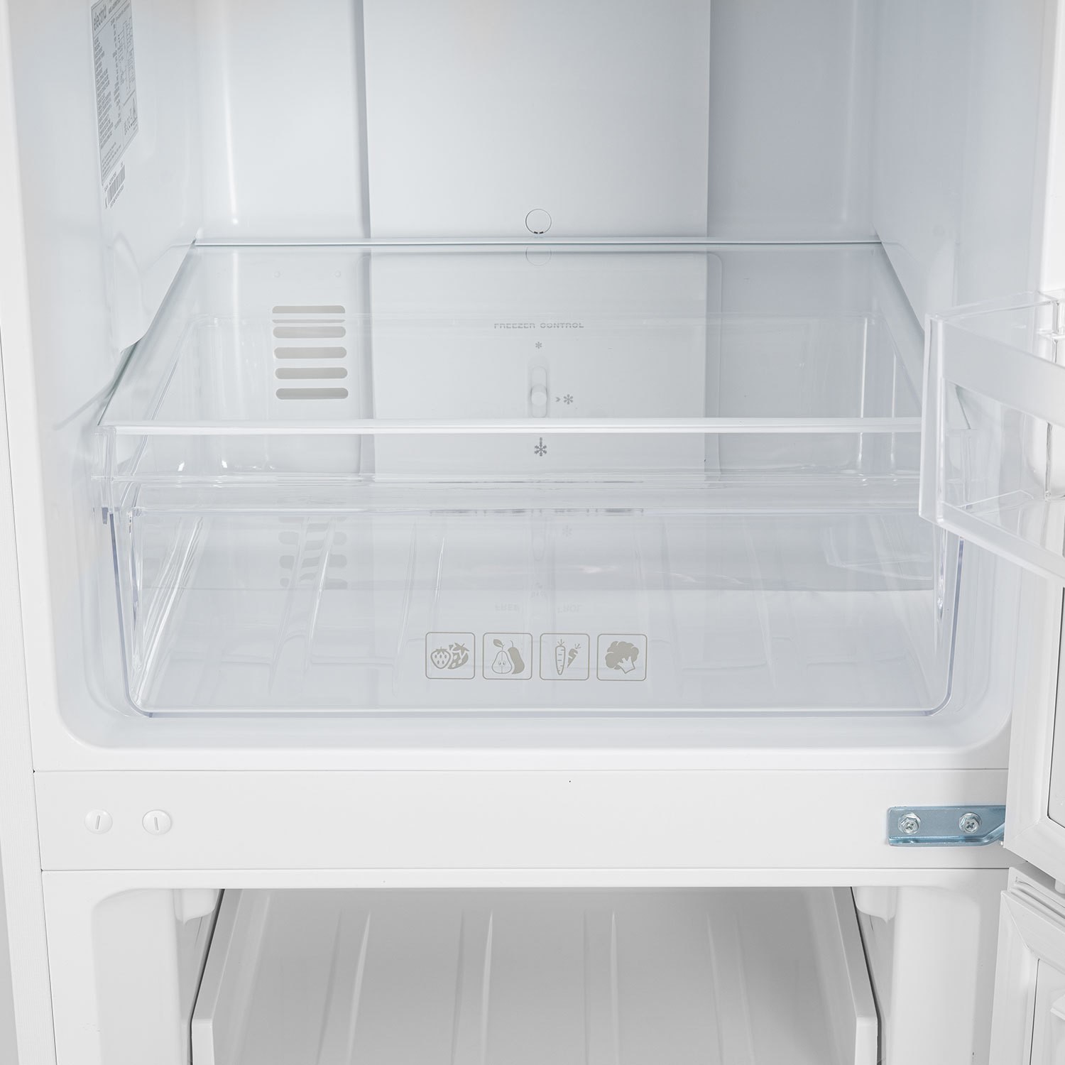This freestanding electriQ fridge freezer features a 50/50 split with 165 L fridge and 82 L freezer capacity, offering practical storage for everyday use. The Total No Frost system keeps ice at bay, eliminating the need for defrosting, while the Multi Airflow technology ensures consistent cooling on every shelf. Inside, two fridge shelves, three freezer drawers, and one freezer shelf help keep your food neatly organised.