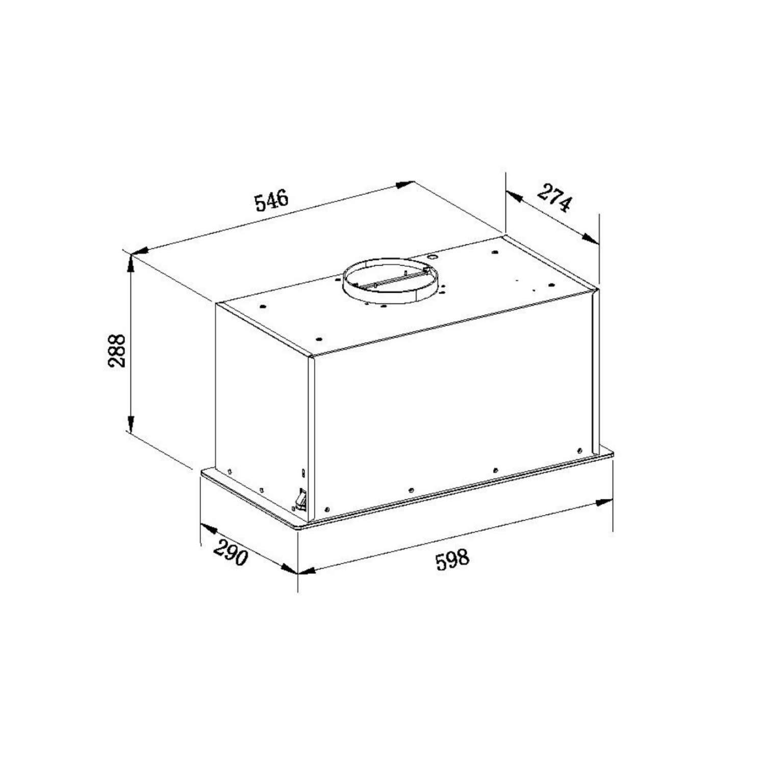 - Dimensions: H 288 x W 598 x D 290 mm