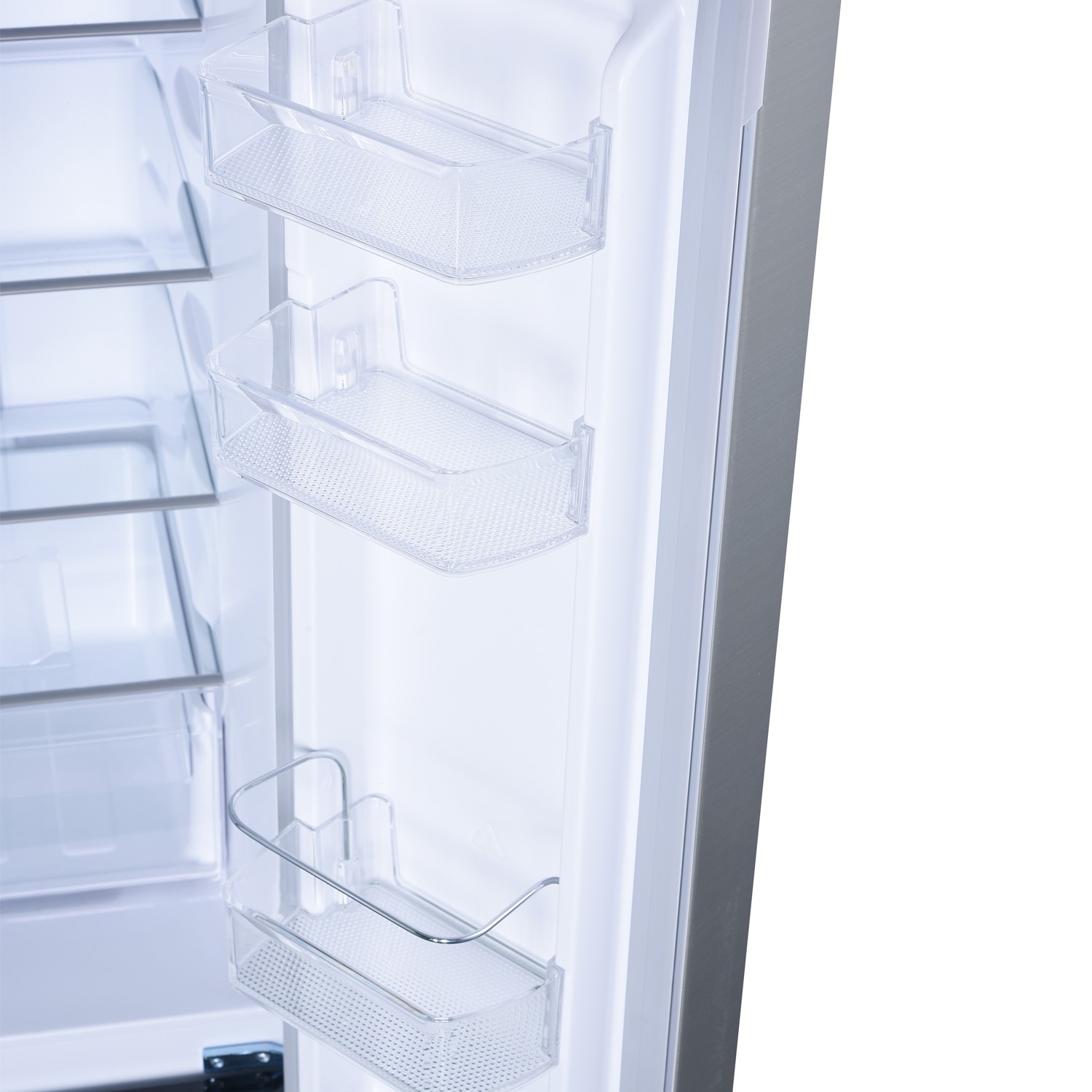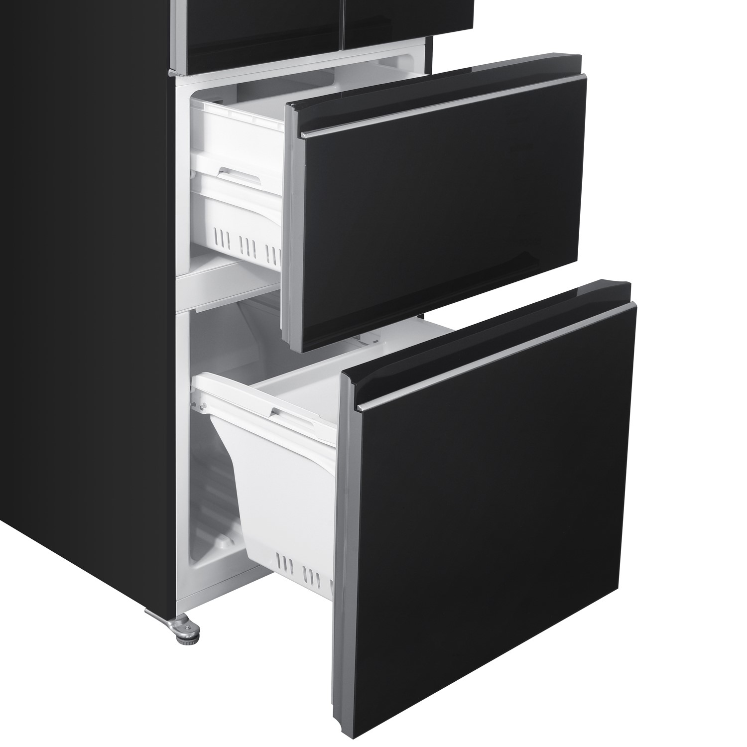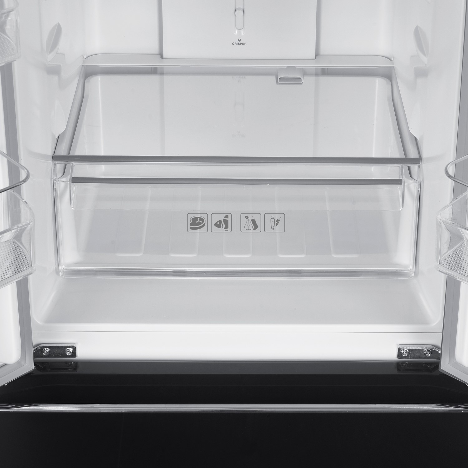 This stylish American-style fridge freezer is a great addition to any kitchen, especially if you’ve limited space. It not only boasts an attractive glass door design but also delivers exceptional practicality. The double doors make it easy to grab what you need, while the spacious salad crisper offers plenty of room for all your veg The freezer is equipped with two convenient French-style drawers, allowing you to quickly locate items without letting too much cold air escape. Plus, you'll never have to worry about frost build-up thanks to its advanced total no frost technology, which keeps all compartments evenly cooled and frozen, so your food stays fresher for longer.