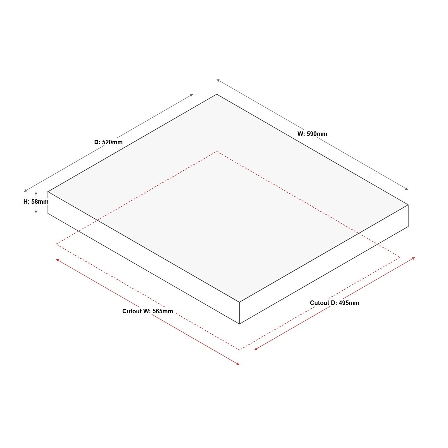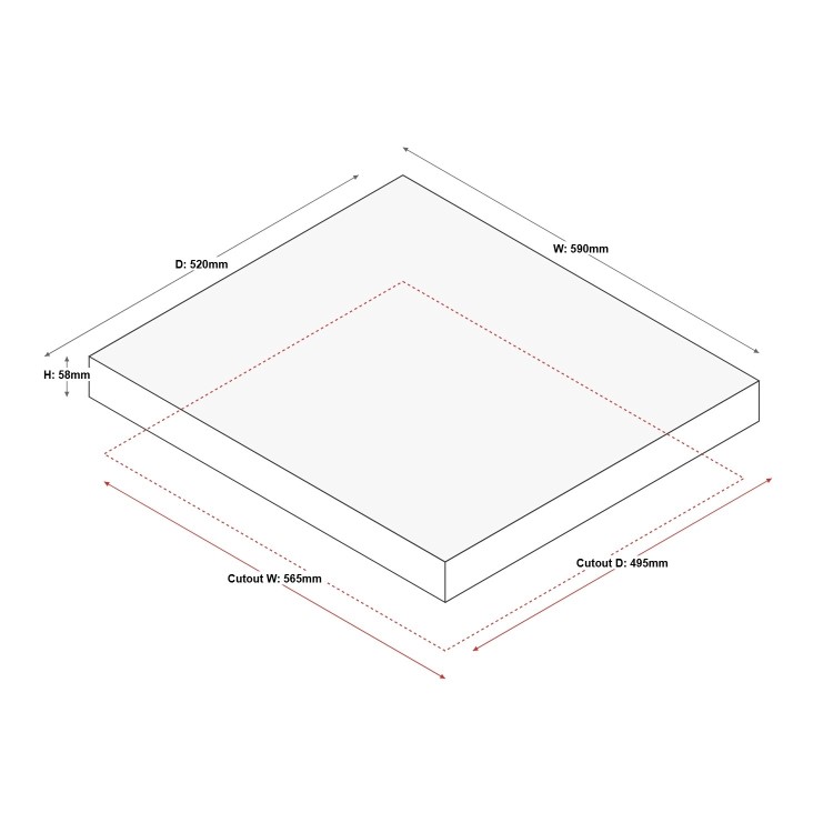 - Cut out dimensions: W565mm x D495mm