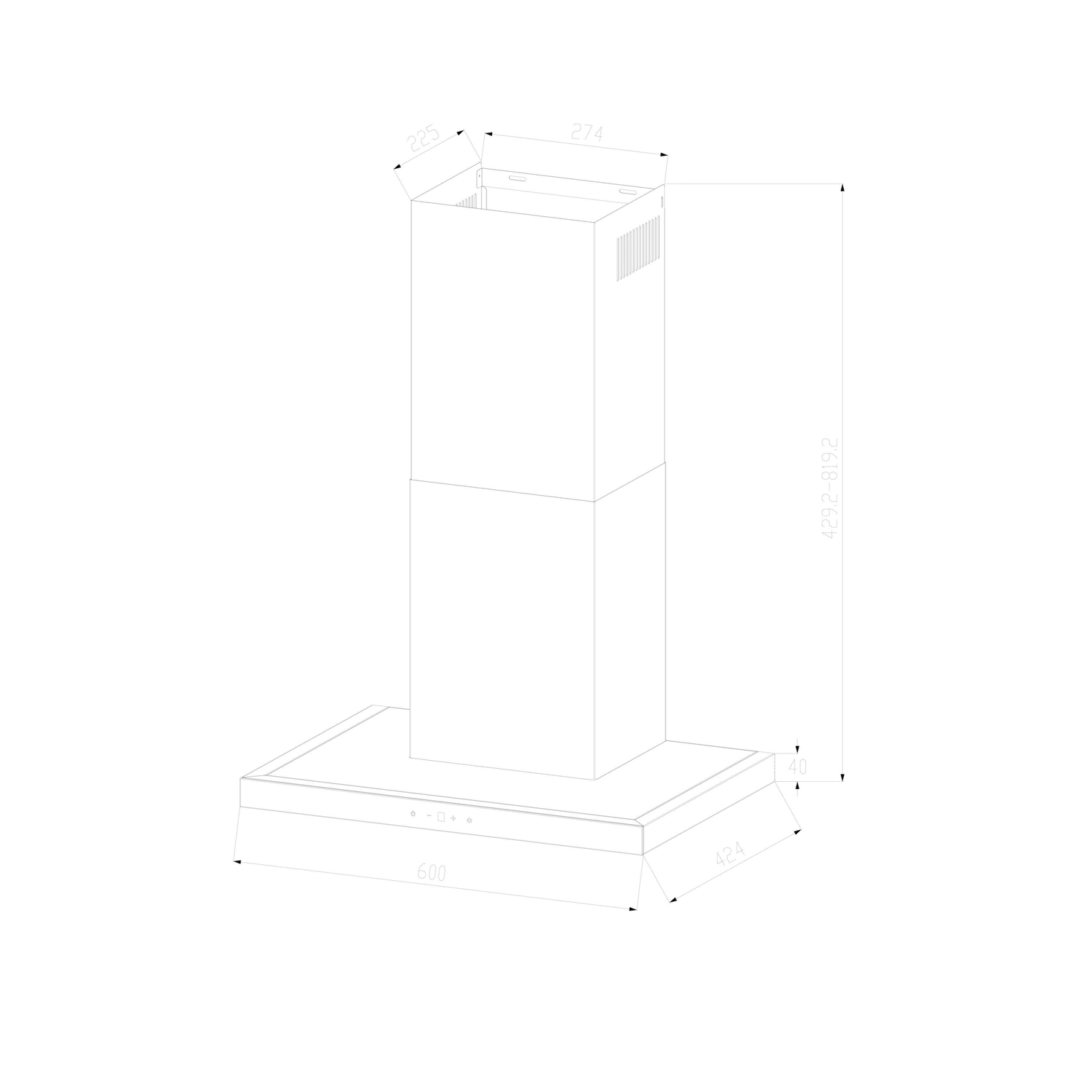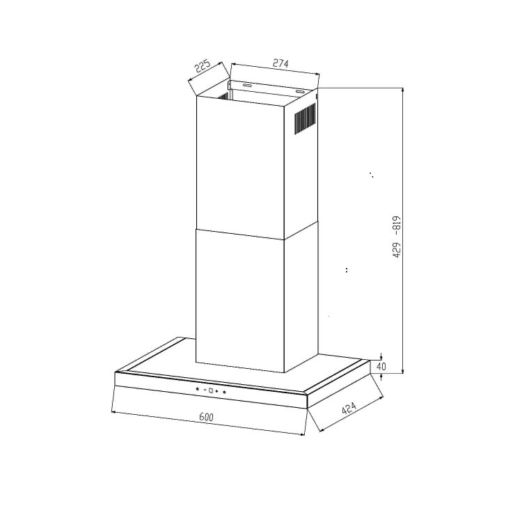 - Chimney dimensions: W 274 x D 225 mm