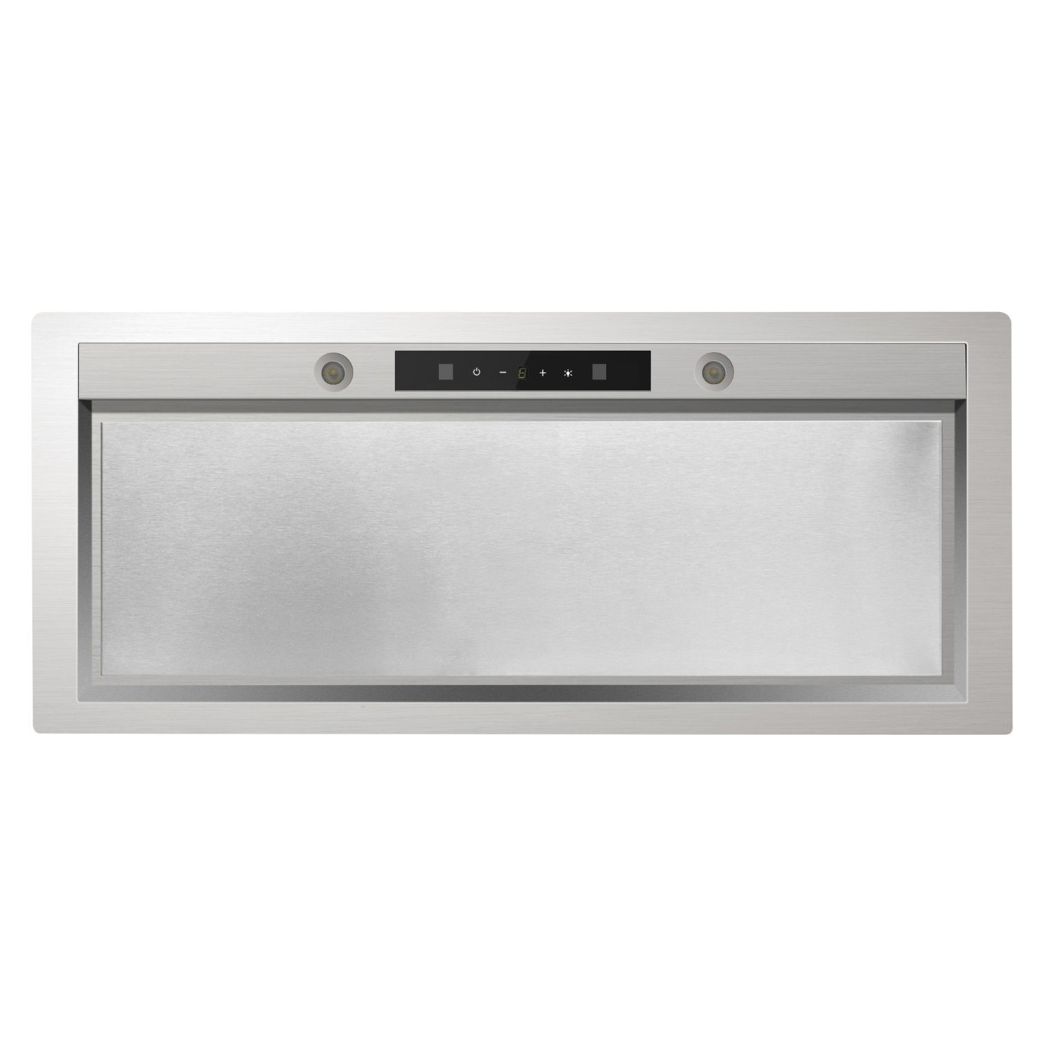 - Slim stainless steel canopy hood designed for seamless built-in integration
