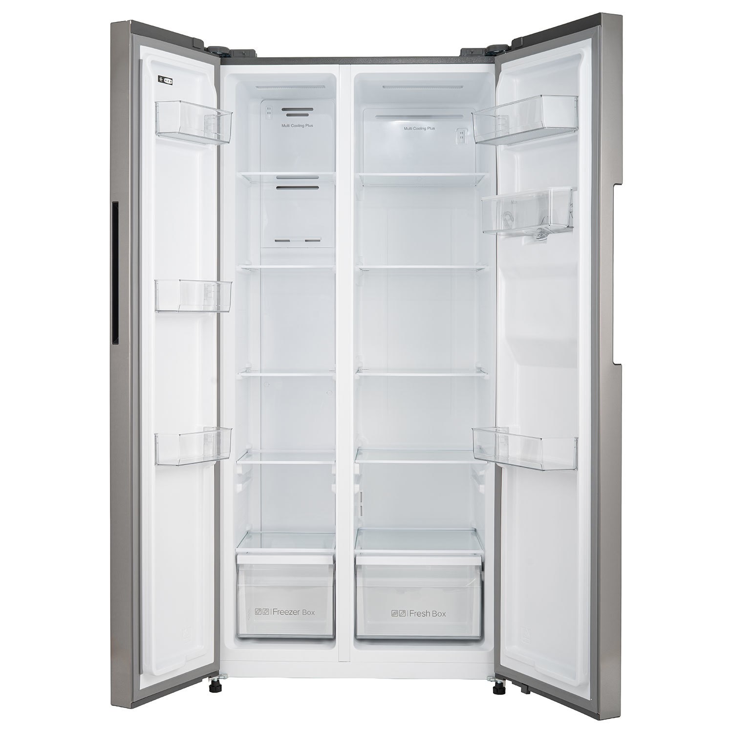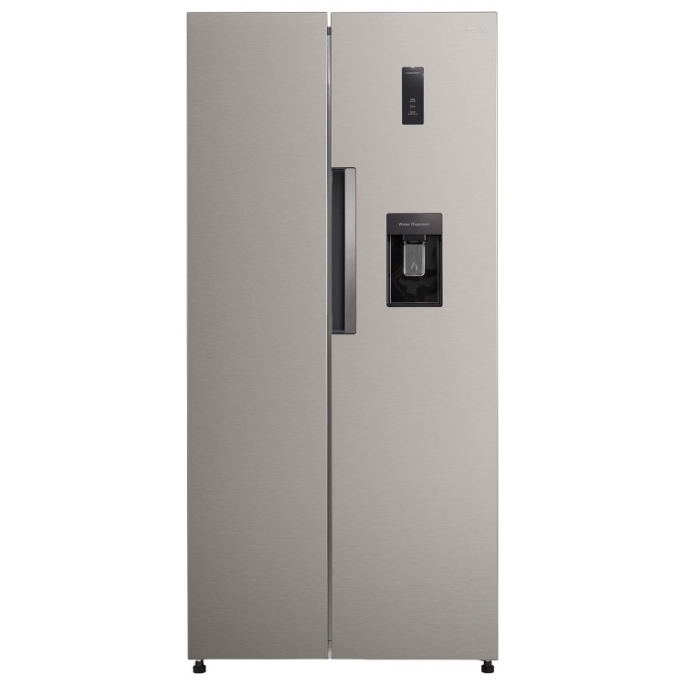 This American style fridge freezer delivers on space and features to help keep your food fresher for longer. The side-by-side design provides a spacious fridge and freezer, perfect for the larger family home. It has a Total No Frost technology, which keeps your items fresh, with no need to defrost. Smart AI Mode automatically adjusts the fridge and freezer temperatures based on the surrounding environment, helping maintain optimal freshness without any effort. You’ll also enjoy chilled drinks from the non-plumbed water dispenser – simply fill the tank. In the fridge, you’ll enjoy four adjustable shelves, so you can fit any item inside, while the salad crisper keeps your fruit and veg crisp. On the front, an LED control panel makes choosing your cooling level quick and easy, while the child lock prevents little fingers making any changes.