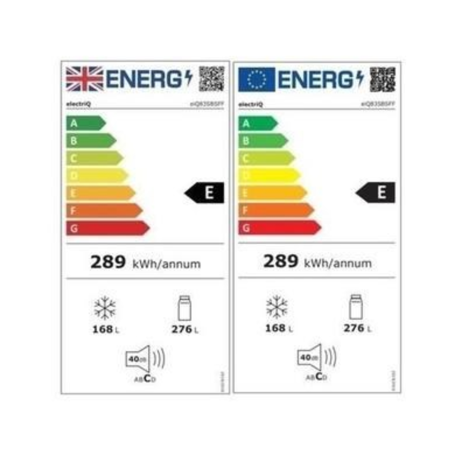 - Fridge capacity: 276L