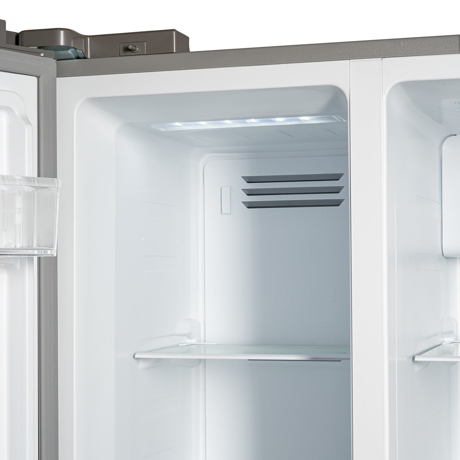 This American style fridge freezer delivers on space and features to help keep your food fresher for longer. The side-by-side design provides a spacious fridge and freezer, perfect for the larger family home. The freezer features Total No Frost technology, which keeps your items fresh, with no need to defrost. You’ll also enjoy chilled drinks from the non-plumbed water dispenser – simply fill the tank. In the fridge, you’ll enjoy four adjustable shelves, so you can fit any item inside, while the salad crisper keeps your fruit and veg crisp. On the front, an LED control panel makes choosing your cooling level quick and easy, while the child lock prevents little fingers making any changes.