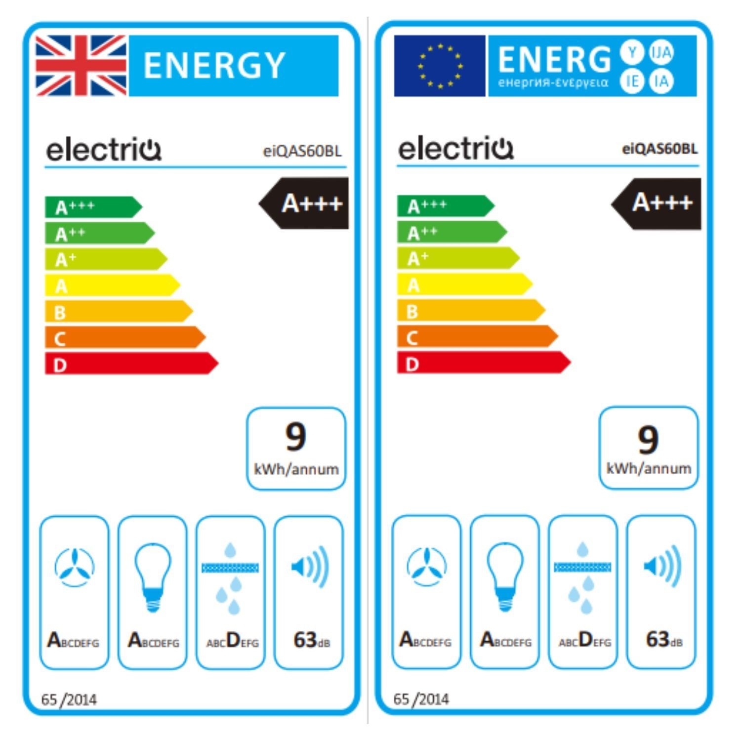 The electriQ eiQAS60BL 60cm Wall-Mounted Chimney Cooker Hood combines minimalist design with powerful performance. Its flush, modern look and black finish make it a stylish choice for contemporary kitchens.