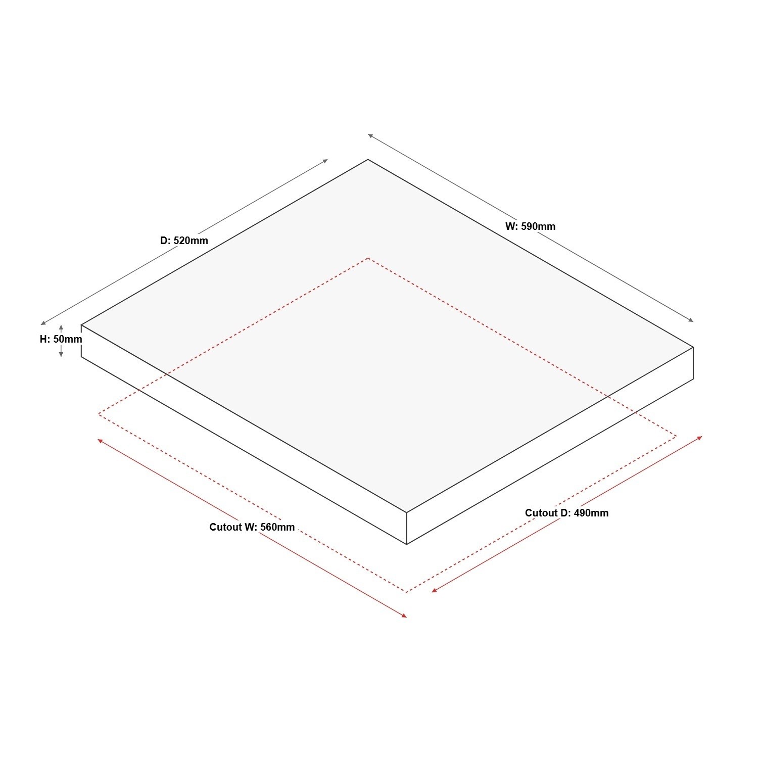 - Hob dimensions: (W)59 x (D)52 x (H)5.2 cm