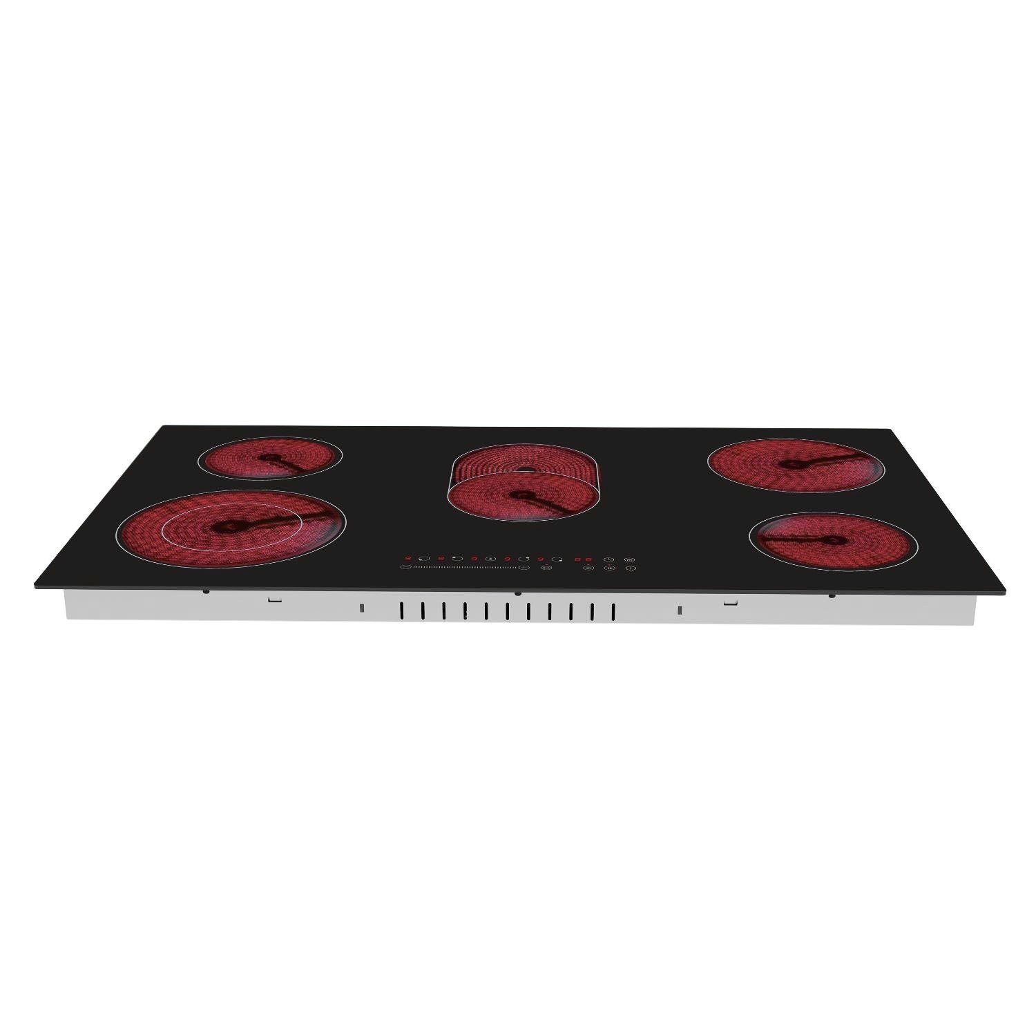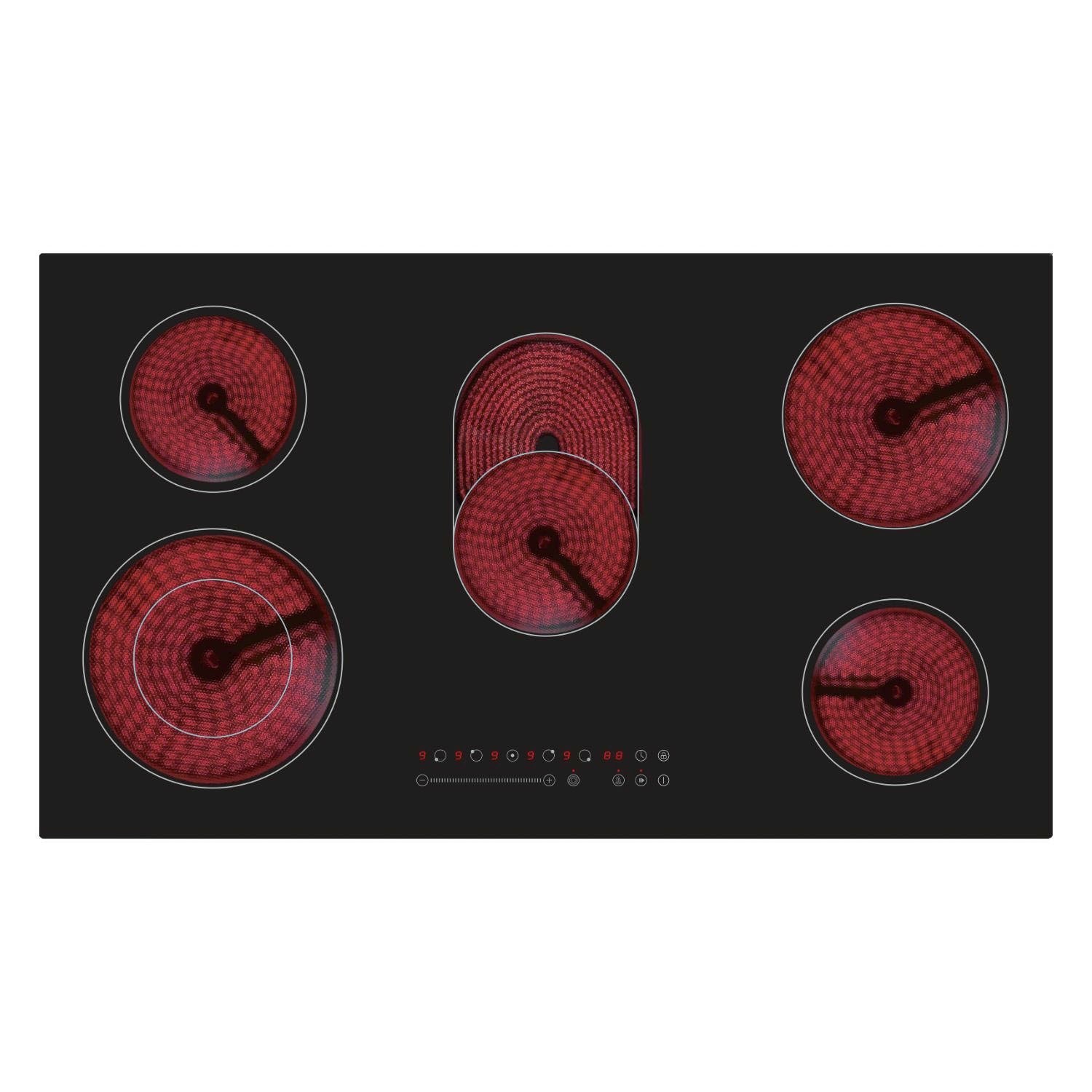 The electriQ 90cm Ceramic Hob offers a stylish and efficient cooking solution for any kitchen. With five versatile cooking zones and a choice of 9 power levels, this hob is designed to cater to all your cooking needs—from a gentle simmer to a fast boil. The hob has extra space too – with an extended cooking zone in the middle and a large zone at the front left side. Its smooth ceramic surface makes cleaning easy, while the touch controls provide an intuitive, user-friendly experience. The hob also features a "Stop & Go" function, allowing you to pause cooking when needed and resume with ease. The "Keep Warm" function ensures your food stays at the perfect temperature until you're ready to serve, and for added safety, the ceramic hob includes a residual heat indicator to alert you when the surface is still hot, and a lock function that makes it difficult for little hands to turn on.