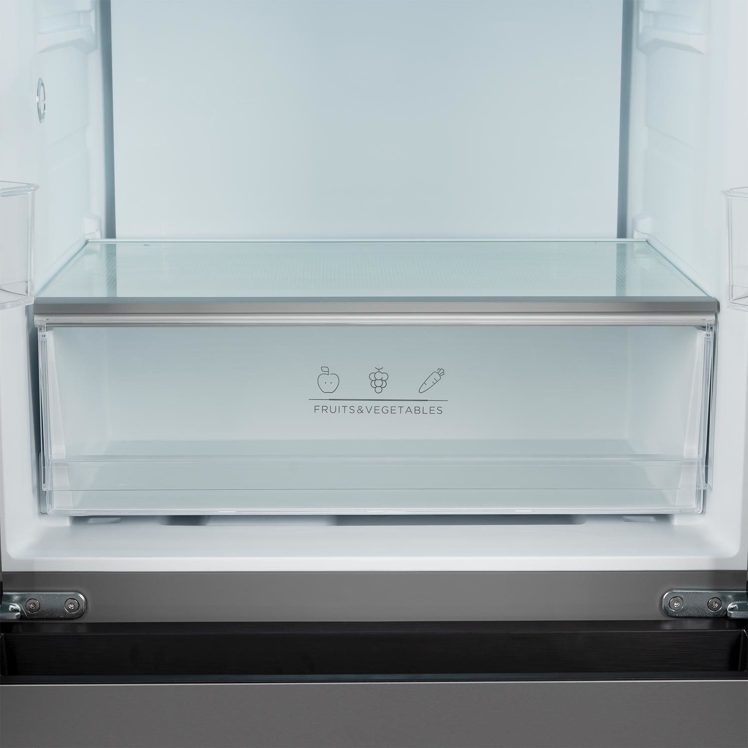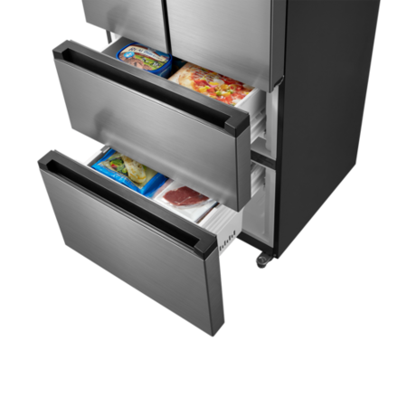 This one-of-a-kind American-style fridge freezer offers ample space for all your groceries in a compact design that easily fits into cosy kitchens. The double doors make it super easy to get to all your items, and the full-width salad crisper has an adjustable temperature setting that lets you store fruits, veggies, drinks, or meat. The freezer is equally impressive, featuring two French-style drawers that make loading and accessing your frozen treats effortless. Best of all, it's equipped with multi air-flow and total no-frost technology for added convenience, ensuring longer-lasting freshness without any frost build-up.