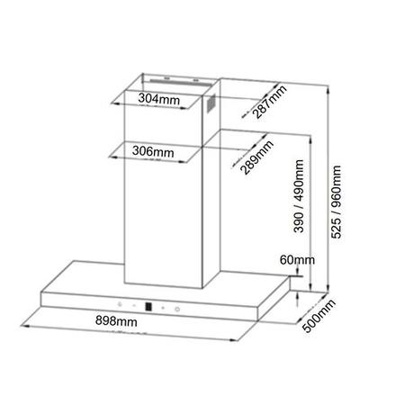 - Dimensions: H 525-960 x W 898 x D 500mm
