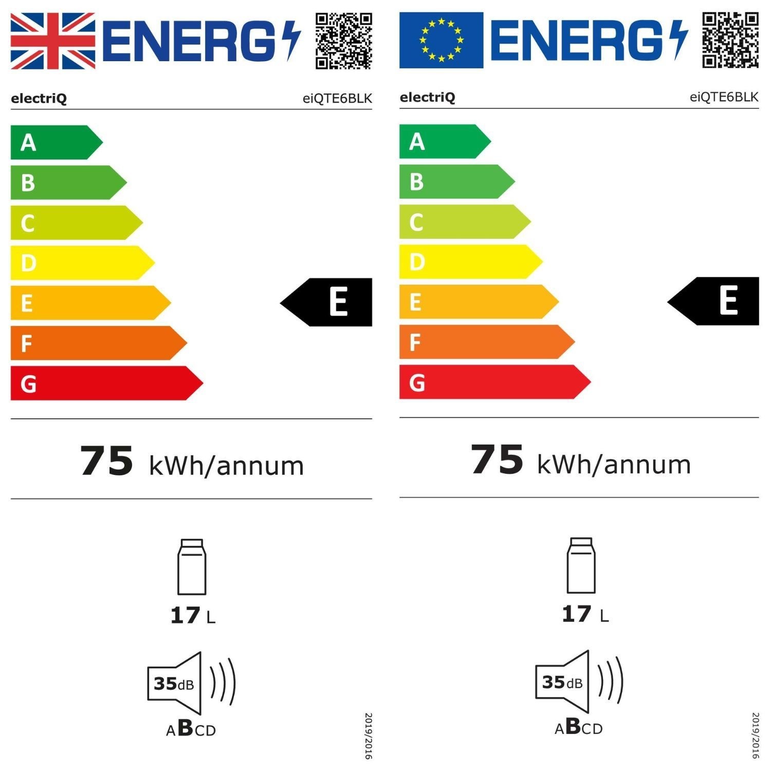 - Annual energy consumption: 75 kWh