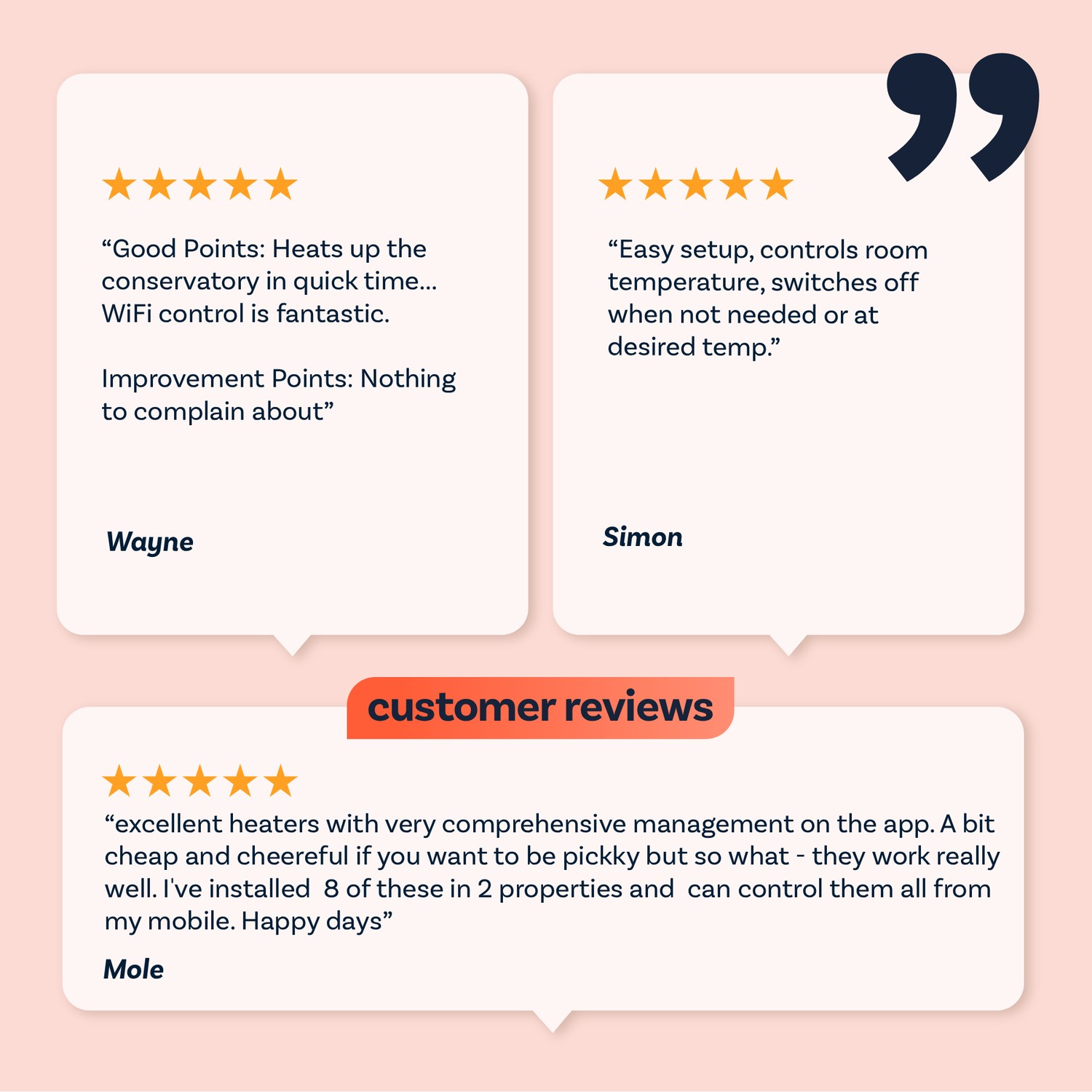 This designer panel heater can be both wall-mounted or portable by using the supplied stand. Its IP24 water-resistant allows it to be used in many spaces including bathrooms. There are no moving parts or pipework required, just an electricity supply, making it reliable and less likely to break. What's really impressive though is that you can take control of all the heater functions from anywhere, at any time, using your smartphone. Simply connect the heater to your home WiFi, download the app on your smartphone and away you go. This has been implemented for your ease, convenience and to help you be more energy-efficient. Heat up your room minutes before you arrive home! The advanced energy efficient design, weekly timer and precise digital controls have all been put in place to provide more efficiency and help you save money on those energy bills.