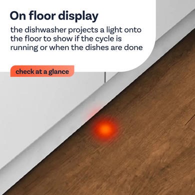 Say goodbye to wet dishes thanks to Auto Open Drying, which gently opens the door at the end of a cycle for natural, streak-free drying. Choose from 10 programmes, including a Hygiene wash for a deeper clean and a Quick Wash when time is short. The clever cutlery tray keeps forks and spoons tidy for a better clean. You can even use the Delay Start option to run the wash when energy is cheaper. And with the handy Floor Light, a beam of light on your kitchen floor tells you if the dishwasher is running or finished, so you don't need to open the door to check. And because this C rated energy efficient dishwasher runs quietly, it won't disturb your home. It's a smart, practical choice for any kitchen.