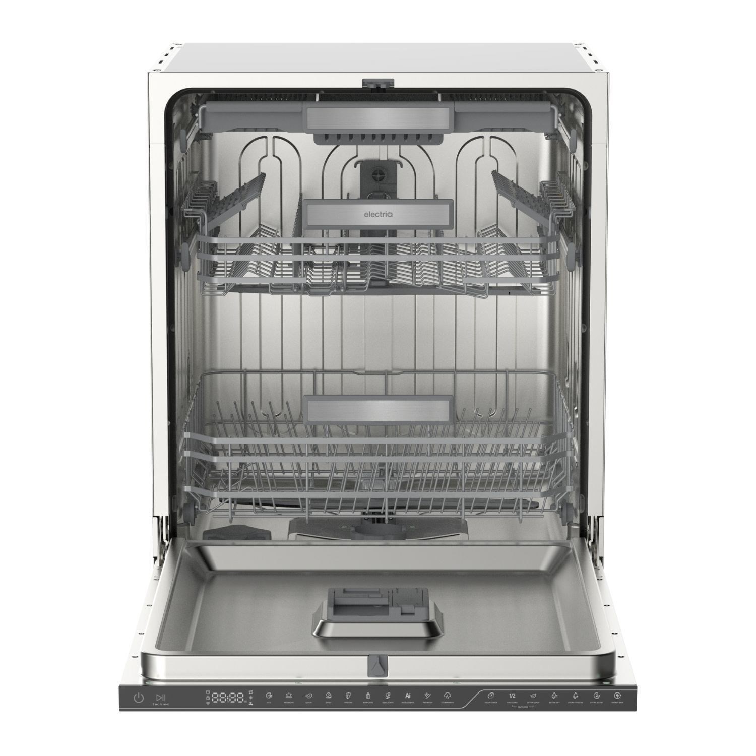 Make washing up simple with the electriQ Series 2 fully integrated dishwasher. Its extra-large 16 place setting capacity means you can fit more dishes, pots, and pans in one go, cutting down on loads and saving you time. The handy adjustable upper basket lets you easily fit taller items, making loading simple. Plus, with useful functions like Half Load for smaller washes, Extra Quick for when you're in a hurry, and Energy Save to help with bills, this integrated dishwasher offers great flexibility for your cleaning needs.