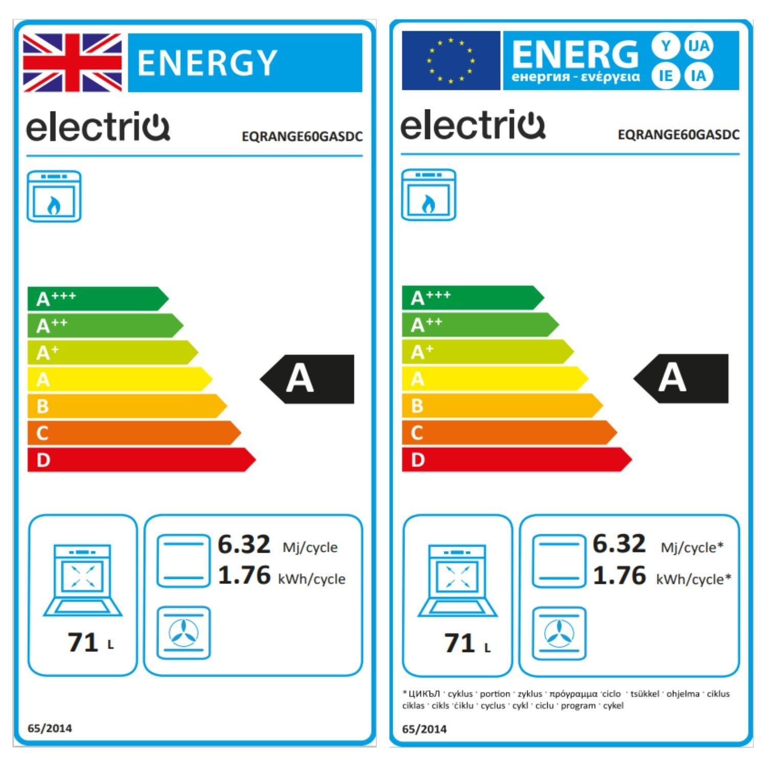 - Main oven capacity: 71L
