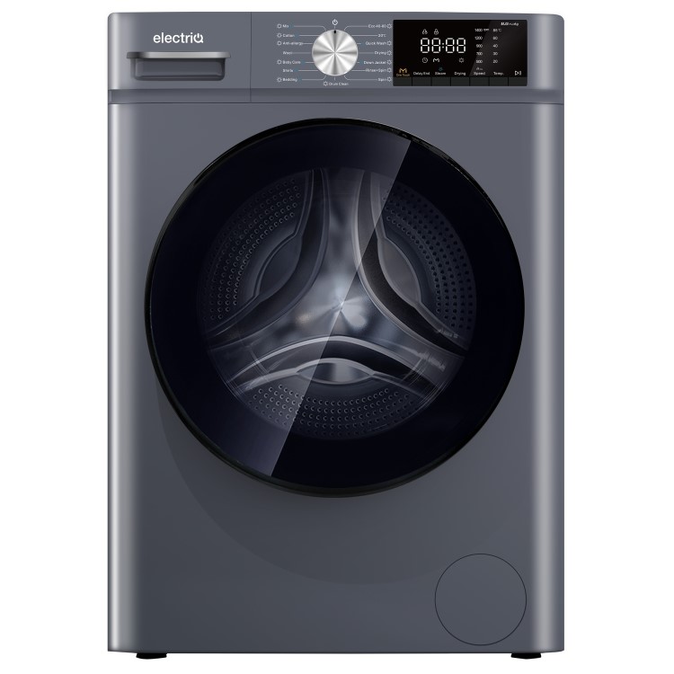 Make laundry simple with the electriQ 8kg wash 5kg dry graphite grey washer dryer. This machine handles big loads of clothes, perfect for busy homes, and its slim 52cm depth means it fits easily into smaller spaces. You get clean, dry clothes without needing two separate machines, saving you time and effort. Plus, the M-Smart One Touch function takes the guesswork out of washing, picking the best settings for your load automatically.